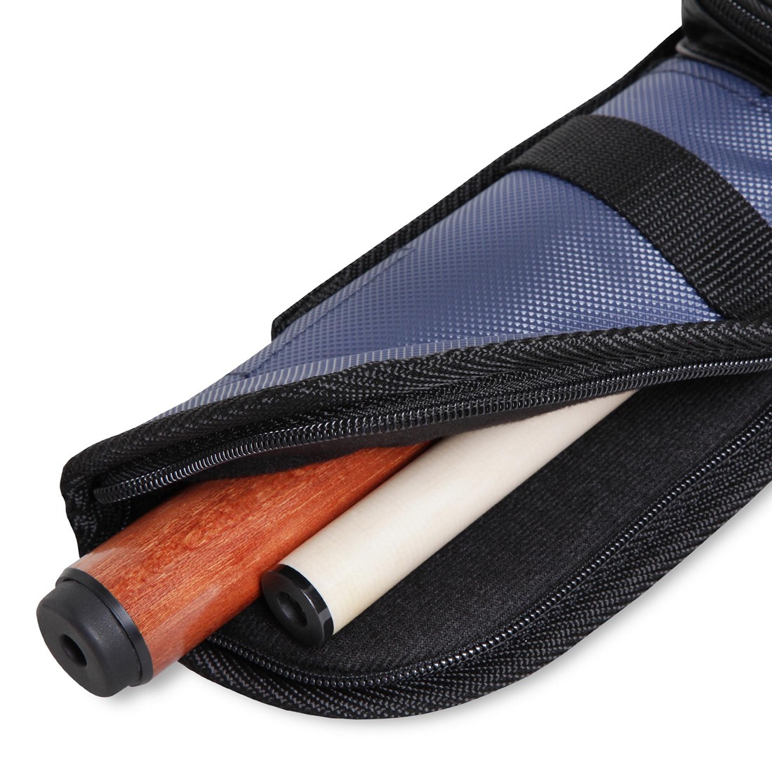 Снаружи чехла имеется небольшое накладное отделение черного цвета, которое можно использовать для хранения личных вещей или бильярдных аксессуаров. Внутреннее отделение и наружное закрываются на замки-«молнии».