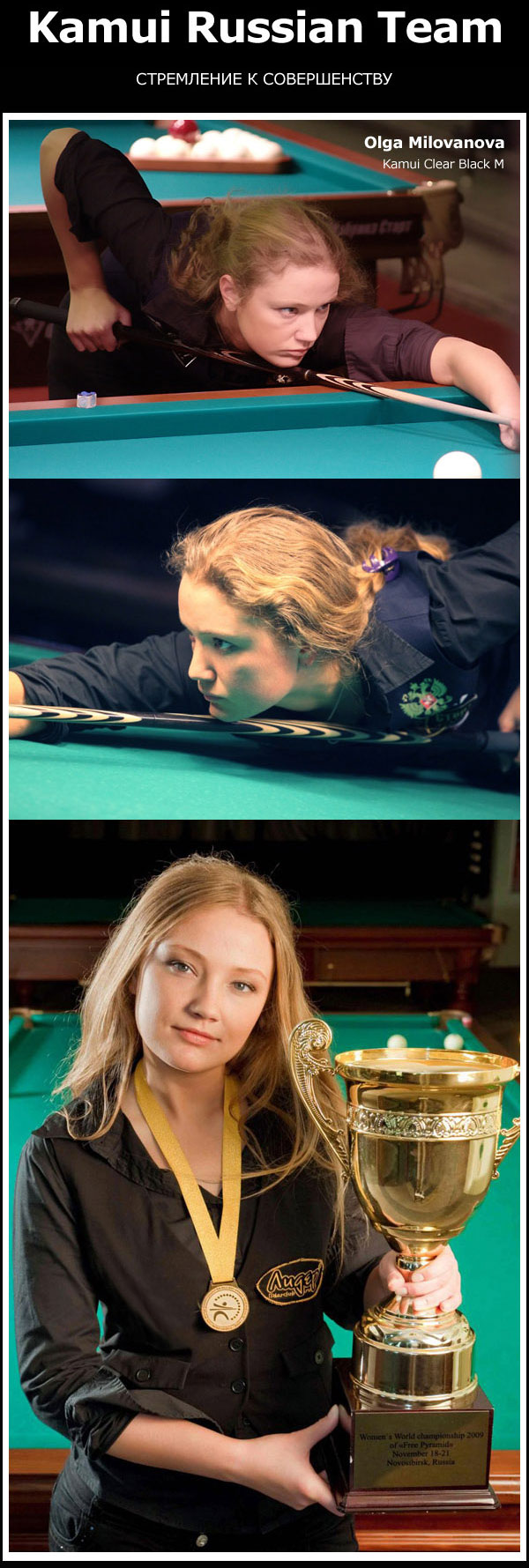 Аксессуарам и наклейкам под маркой Kamui отдали свое предпочтение лучшие бильярдисты во всем мире, в числе которых ведущие профессиональные игроки в пирамиду и российские пулисты: неоднократная чемпионка мира и Европы Ольга Милованова, чемпион России, многократный призер крупнейших международных соревнований Дмитрий Баев, многократный чемпион России, победитель этапов Евротура Константин Степанов, победитель и призер чемпионатов России Сергей Никитин, чемпион мира, призер чемпионата Европы, победитель престижного Кубка Кремля Ярослав Тарновецкий.