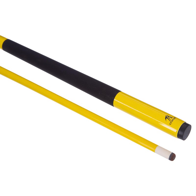 Двусоставной кий Titanium Yellow для пула изготовлен из мерсавы - красивой и прочной древесины африканских пород, имеющей показатель твердости, превышающий аналогичный параметр древесины дуба. Длина кия 145 см, вес около 530-550 г. На ударопрочный пластиковый наконечник модели установлена наклейка из прессованного цельного куска натуральной кожи диаметром 13 мм. Скрутка стыка изготовлена из нержавеющего металла, бандажные кольца - из пластика. Турняк с орнаментом оснащен льняной обмоткой и резиновым бампером.